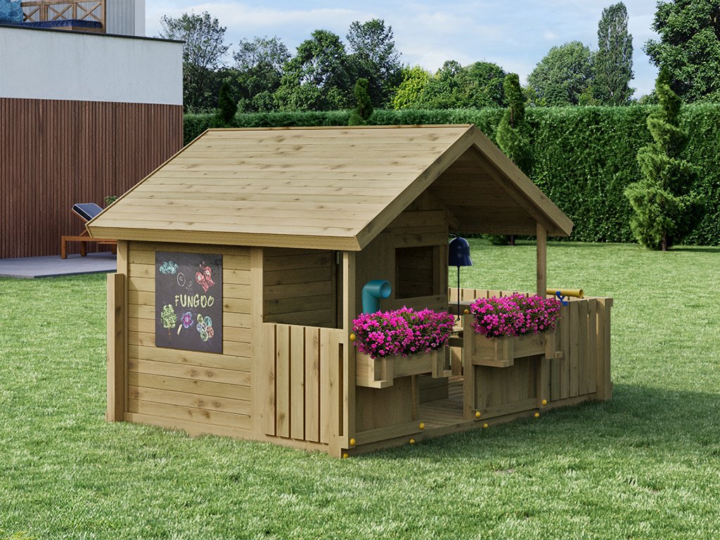 Lieferumfang: | Spielhaus Sunny, Fußboden, 2x Blumenkasten, 1x Picknicktisch, 1x Periskop, 1x Teleskop, 1x Glocke, 4 Bodenanker, detaillierte Montageanleitung |