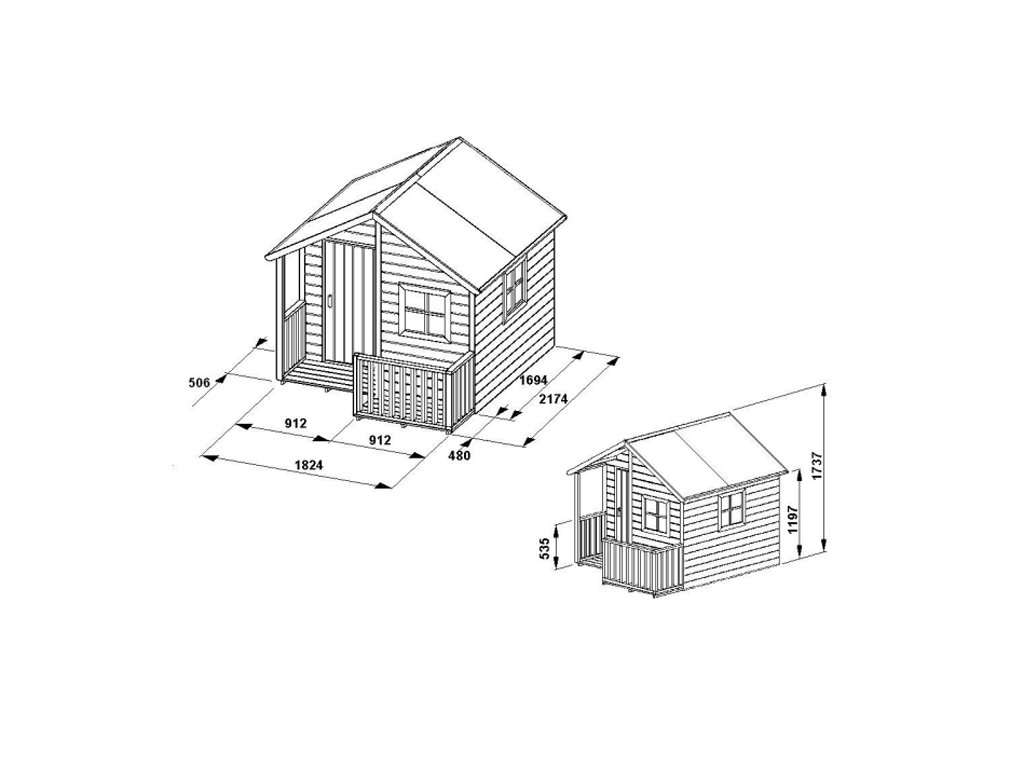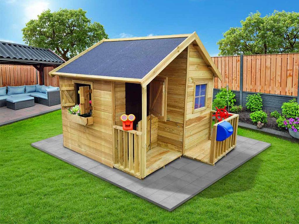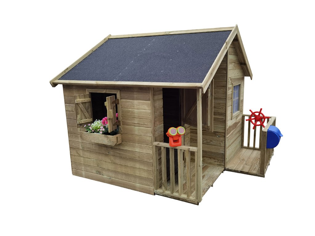 Das Spielhaus mit Veranda wird mit Einzeltür und 3 Fenstern geliefert und sorgt für großes Spielvergnügen bei den Kindern.