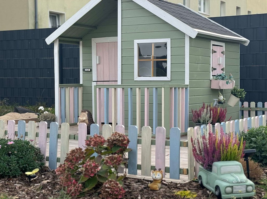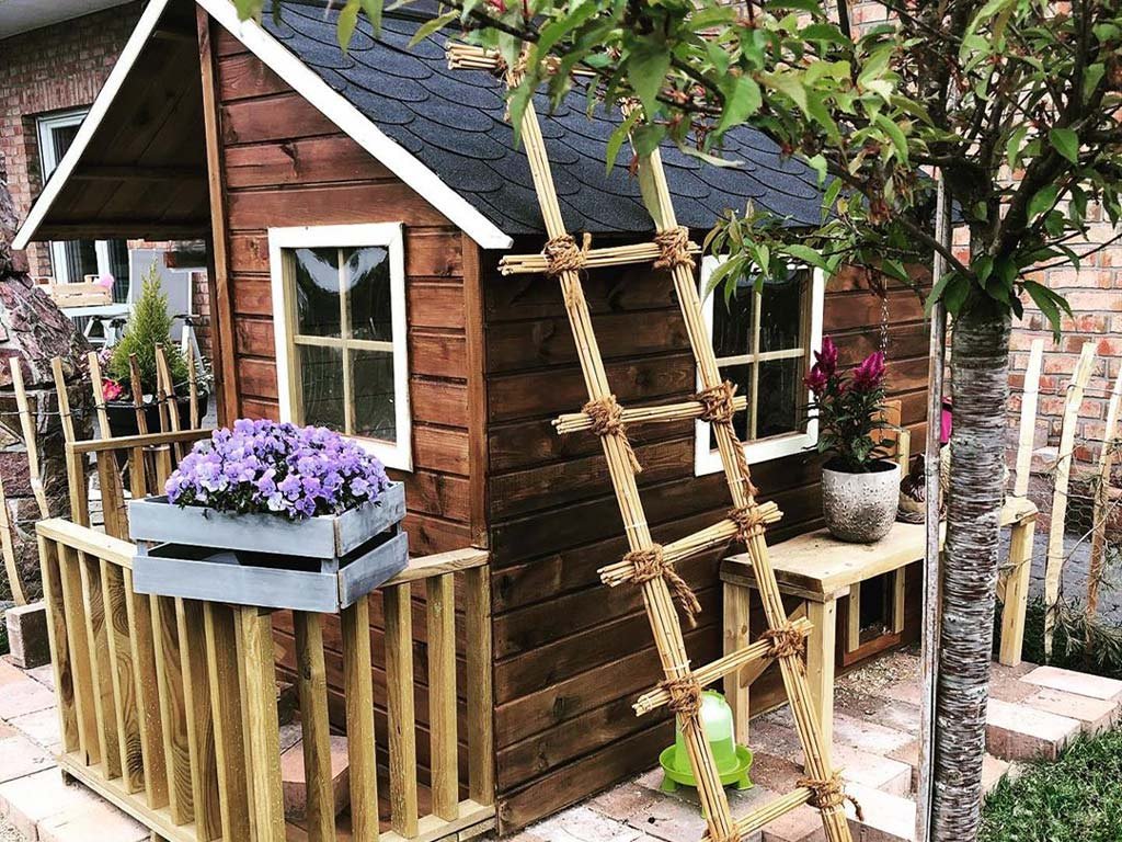 Das Spielhaus ist durch das spezielle Holzschutzverfahren der Kesseldruckimprägnierung, bei dem eine Salz-Wasserlösung (chromfrei sowie umweltfreundlich und unbedenklich) porentief in das Holz gepresst wird, vor Fäulnis und holzzerstörenden Pilzen für viele Jahre geschützt. Das Spielhaus benötigt daher keinen weiteren Schutzanstrich. Das Imprägniersalz schützt die Holzzellen und das Wasser kann danach wieder entweichen. Je nach Witterungsbedingungen kann dieser Trocknungsprozess langsam oder schnell gehen. Um das natürliche Vergrauen durch die Witterung kannst du dein Spielhaus gerne – aber erst nach vollständiger Trocknung – individuell farbig gestalten. Wir empfehlen dazu eine deckende, offenporige Holzschutzlasur. Weitere Informationen zur Kesseldruckimprägnierung findest du im “Infoblatt Kesseldruckimprägnierung” in unserem Downloadbereich. - Induviduell erweiterbar