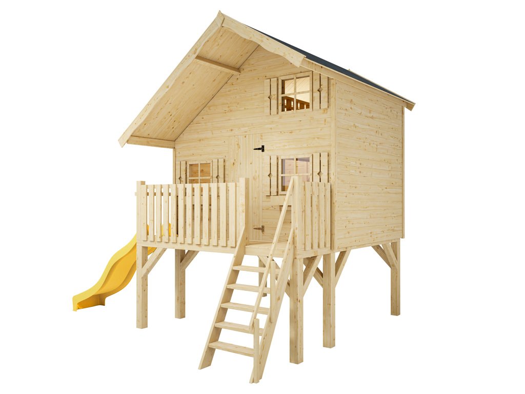 Stelzenhaus Tom XL 15 mm naturbelassen inkl. Veranda – Stelzen und Rutsche gelb